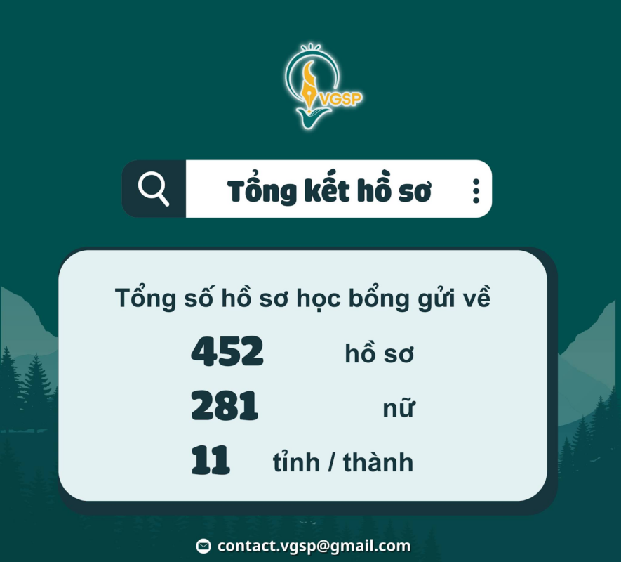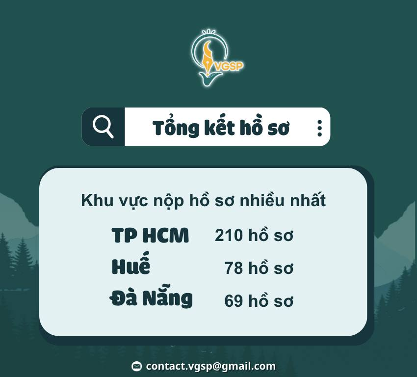 Ngoài ra VGSP cũng đã nhận được sự hưởng ứng sôi nổi từ các bạn sinh viên với tổng 452 hồ sơ trên khắp 3 tỉnh thành , trong đó có 281 nữ. Cả 3 tỉnh thành: Thành phố Hồ Chí Minh, Huế và Đà nẵng ghi nhận số lượng hồ sơ lần lượt là: 210, 78, 69. Với tổng số tiền tài trợ là 385.610.000